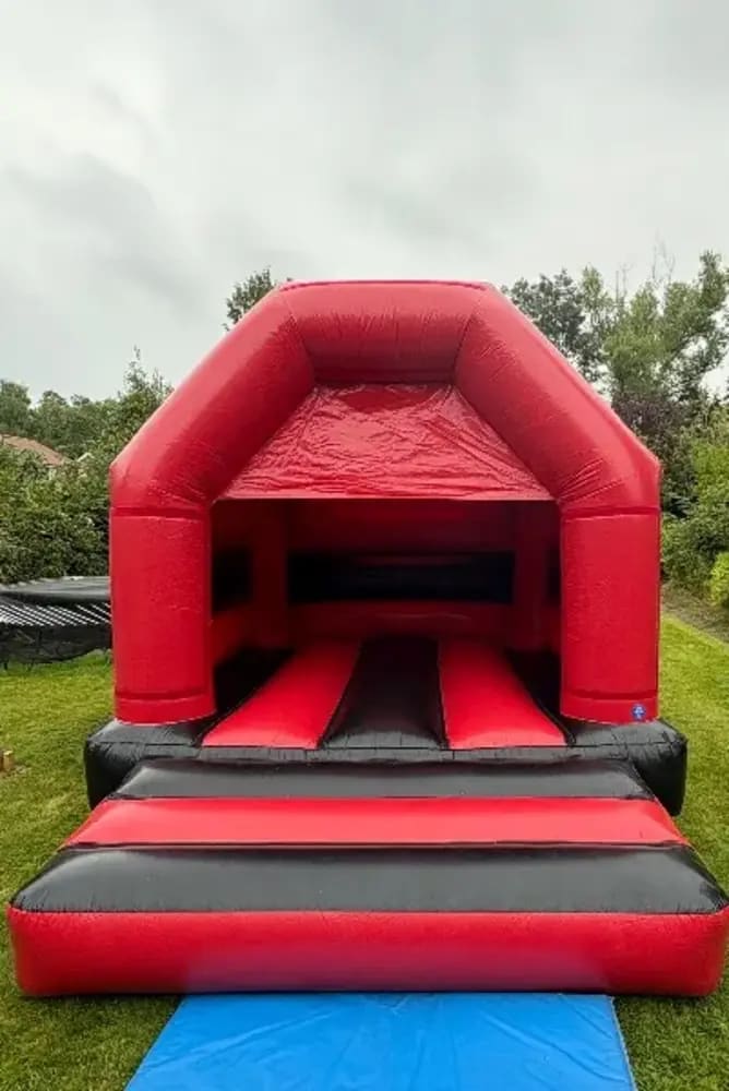12ft wide x 14ft long x 10.6ft highRed and black bouncy castlePlease check the measurements before booking £10 non refundable booking fee